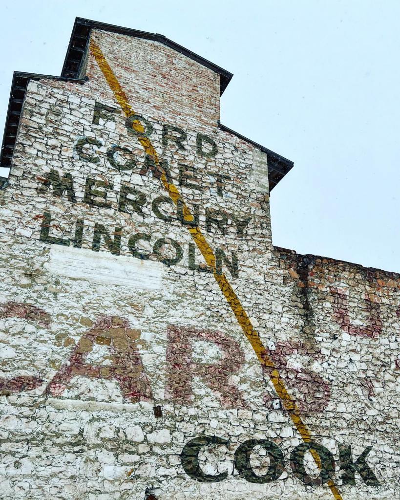 The interesting and prominent inclusion of the Comet brand leads me to wonder if this hand-painted signage was done up around 1960. Between 1960 and 1962 Ford marketed their “compact” Comet (brethren to the Ford Falcon) as a stand-alone brand, separate from Mercury but to be sold by Mercury dealers before Ford went ahead and badged the car as a Mercury product starting in 1963. That’s quite a trivia-packed beginning for a car that was originally supposed to be part of Ford’s short-lived Edsel division.