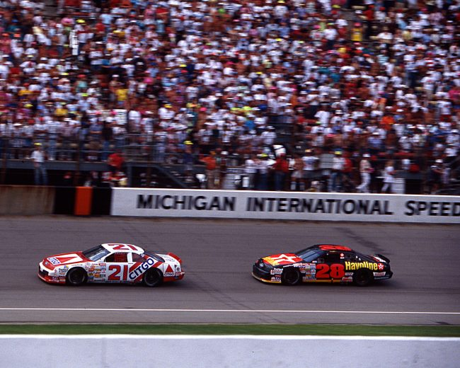 While this epic win was the 100th for the Wood Brothers, it was the first career Cup win for Burton, who entered the night as a 70-1 underdog. If a young man fighting to find his way in the Cup series and getting his first win behind the wheel of the #21 Ford while banging bumpers and doors at the end of a nail-biting race sounds familiar, it should. Because that’s exactly how 1999 NASCAR Champion and Hall of Famer-turned-NBC broadcaster Dale Jarrett won his first Cup series race in 1991, behind the wheel of the Wood Brothers’ #21 Citgo Ford at Michigan International Speedway. Narrowly edging out Davey Allison in the #28 Ford at the finish line by mere inches in one of the sport’s closest-ever finishes.